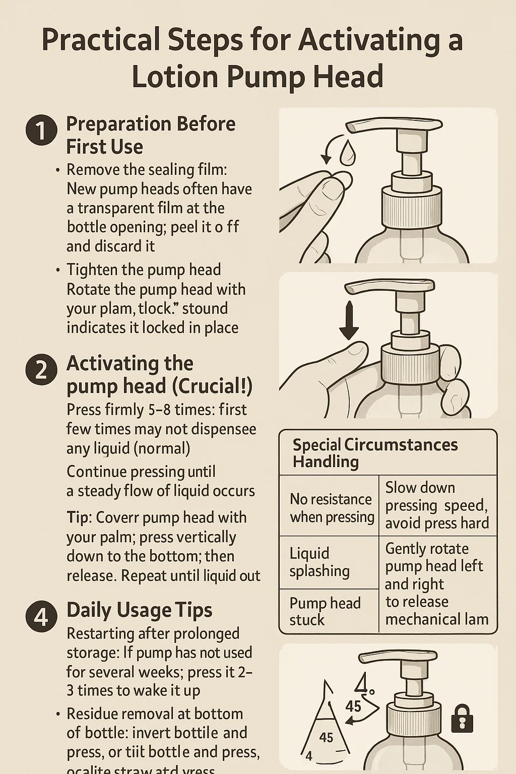 Praktické kroky pro aktivaci lotionu Hlava čerpadla